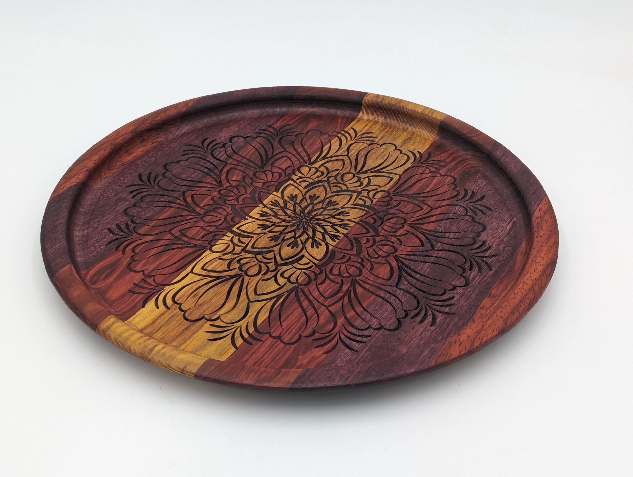 Large Round Serving Tray made from Redheart, Purpleheart, Paduk, and Osage Orange