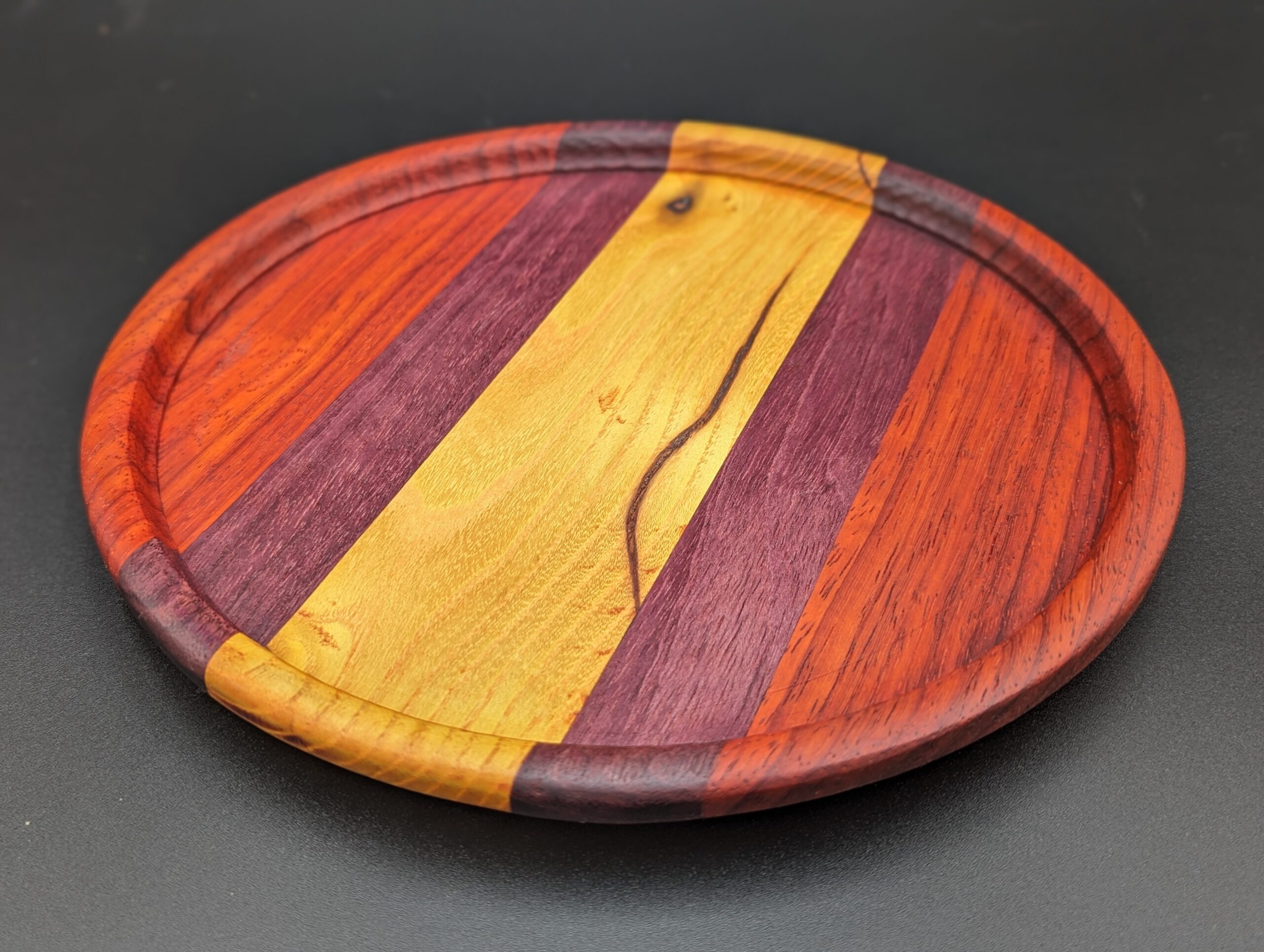 Round Serving Tray made from Paduk, Purpleheart, and Osage Orange